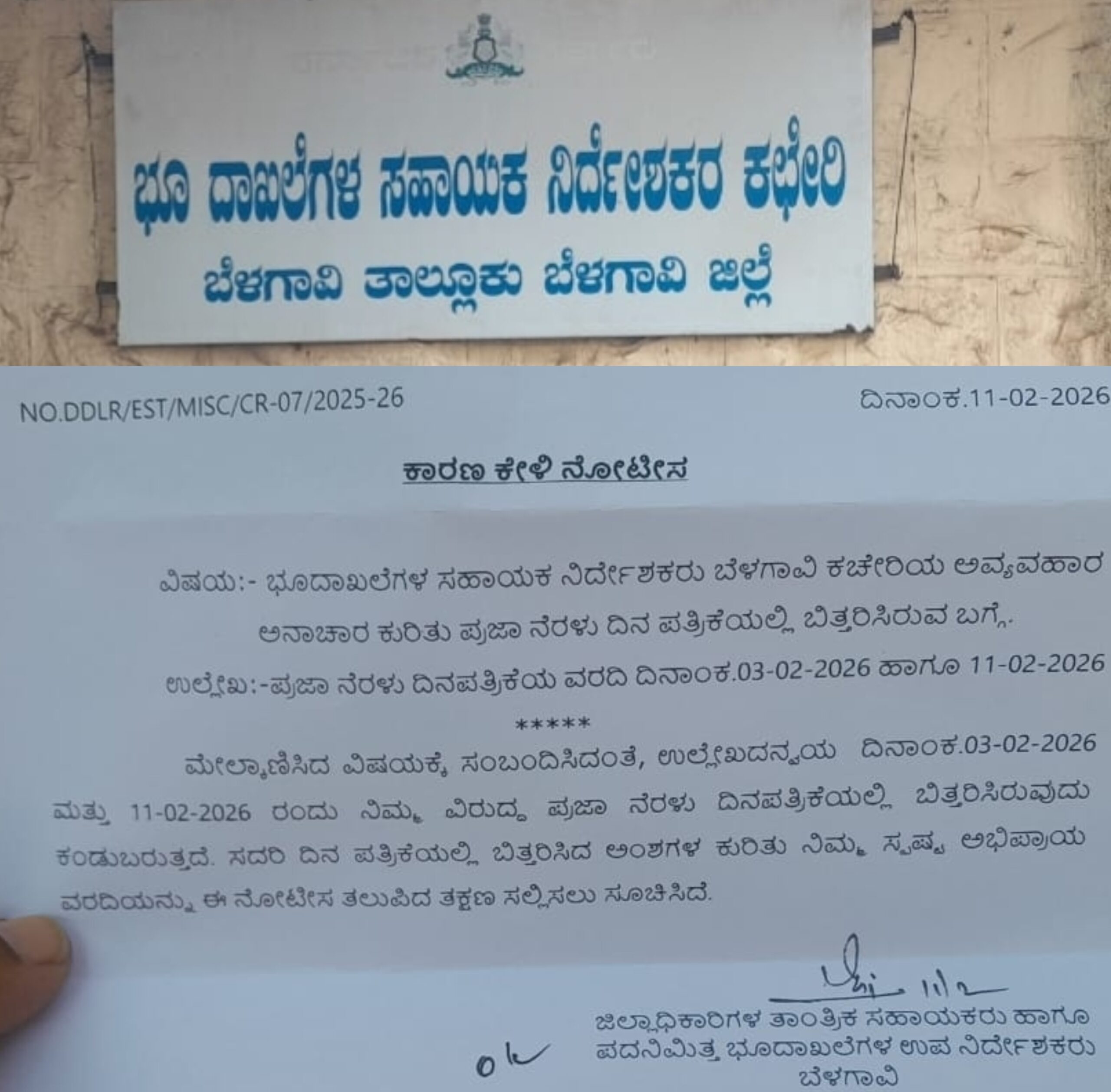 ಪ್ರಜಾನೆರಳು ಇಂಪ್ಯಾಕ್ಟ್; ಭೂದಾಖಲೆಗಳ ಸಹಾಯಕ ನಿರ್ದೇಶಕರಿಗೆ ಶೋಕಾಸ್ ನೋಟಿಸ್ ಜಾರಿ